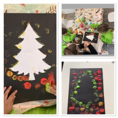 De kinderen van de Lelies zijn ook met de knutselactiviteiten bezig met thema kerst. Ze maken een kerstboom. Ze stempelen er druk op los. Wanneer de kinderen klaar zijn halen ze het witte blaadje er vanaf en dan verschijnt er een mooie boom! ๐ŸŽ„๐Ÿคฉ